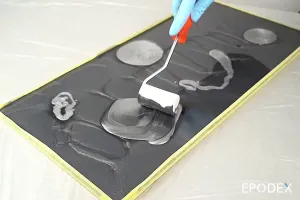 Info: Epoxy resin is sensitive to any kind of moisture during curing (risk of amine blush formation, i.e. white patches in the top layer). For this reason, we recommend that you avoid any contact between water and the epoxy until it has cured completely (at least 7 days). For thin layers, cold temperatures (ambient, substrate, and resin temperatures below 60°F) and increased humidity, the time until the epoxy resin is fully cured may be extended.
