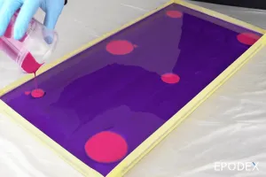 - Plan a quantity of resin and hardener for each colour. We recommend to use 95% of your resin and hardener for the base color GRAPE PURPLE, and 5% for the highlight color TELEMAGENTA.