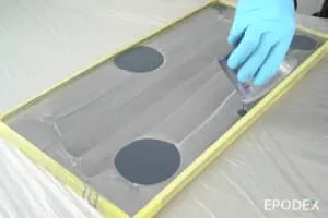 Info: Epoxy resin is sensitive to any kind of moisture during curing (risk of amine blush formation, i.e. white patches in the top layer). For this reason, we recommend that you avoid any contact between water and the epoxy until it has cured completely (at least 7 days). For thin layers, cold temperatures (ambient, substrate, and resin temperatures below 60°F) and increased humidity, the time until the epoxy resin is fully cured may be extended.