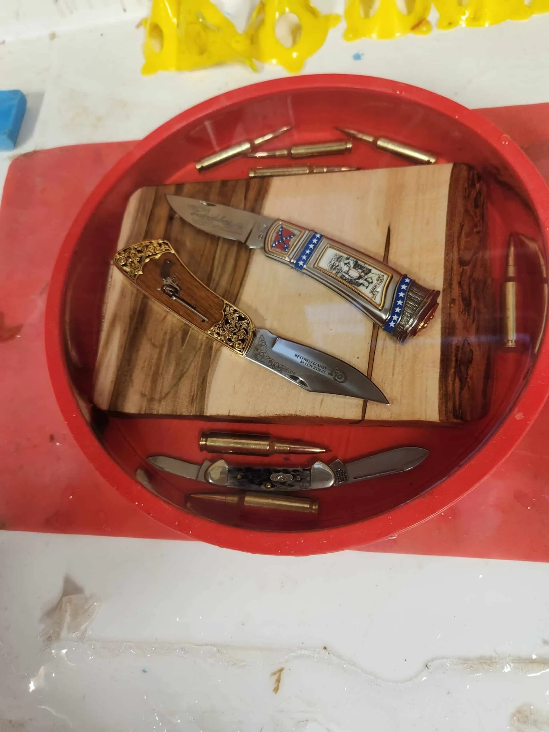 - Select a color and receive the right amount of colorants to dye the clear epoxy