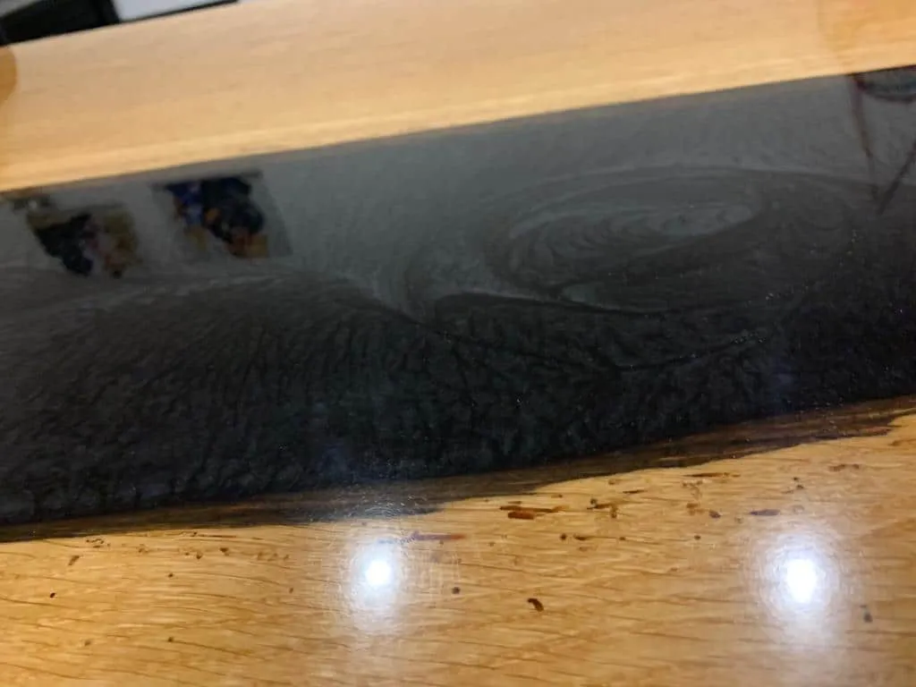 - Continue with the main coating in the same way. Pour the resin-hardener mixture up to 2" deep. If the area to be poured is small (e.g., 4"x 4") and the room temperature is low (60°F), you can pour up to 12" deep at once.