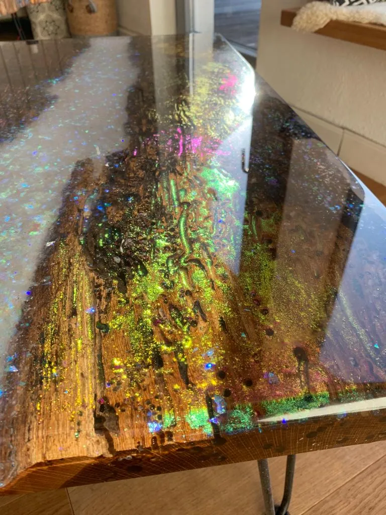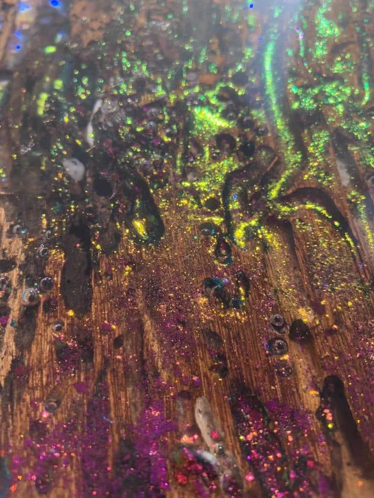 - Glitter pigments/flakes: 1g of dye per 3oz of epoxy. 40g (1.5oz) of dye per gallon of epoxy