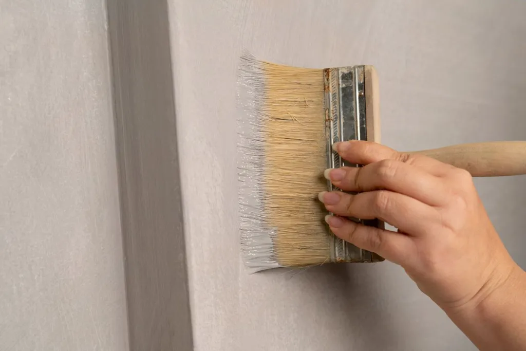 - Apply the first coat Limewash Paint with a fine bristle brush.