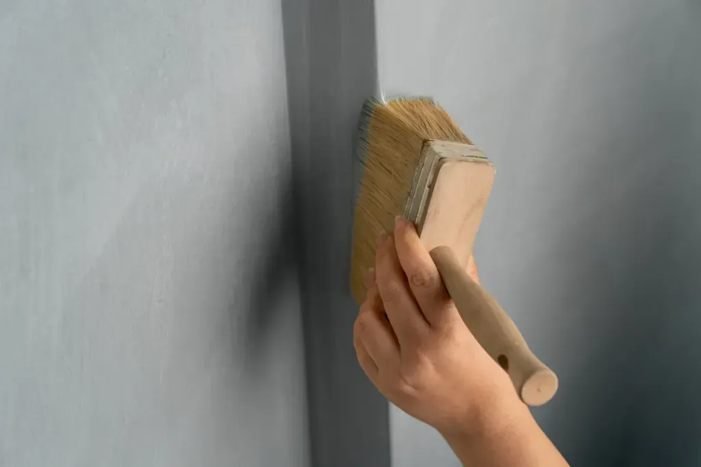 - Apply the first coat Limewash Paint with a fine bristle brush.