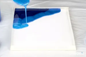 Mix the color powders with the resin-hardener mixture. Recommended quantity of pigment to reach full coverage is 1g of pigment per 2oz of epoxy. 70g (= 2.5oz) of pigment per gallon of epoxy. Adjust the color intensity individually by adding more or less color powders.