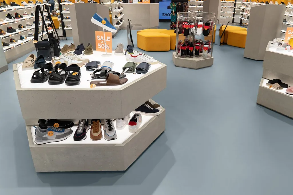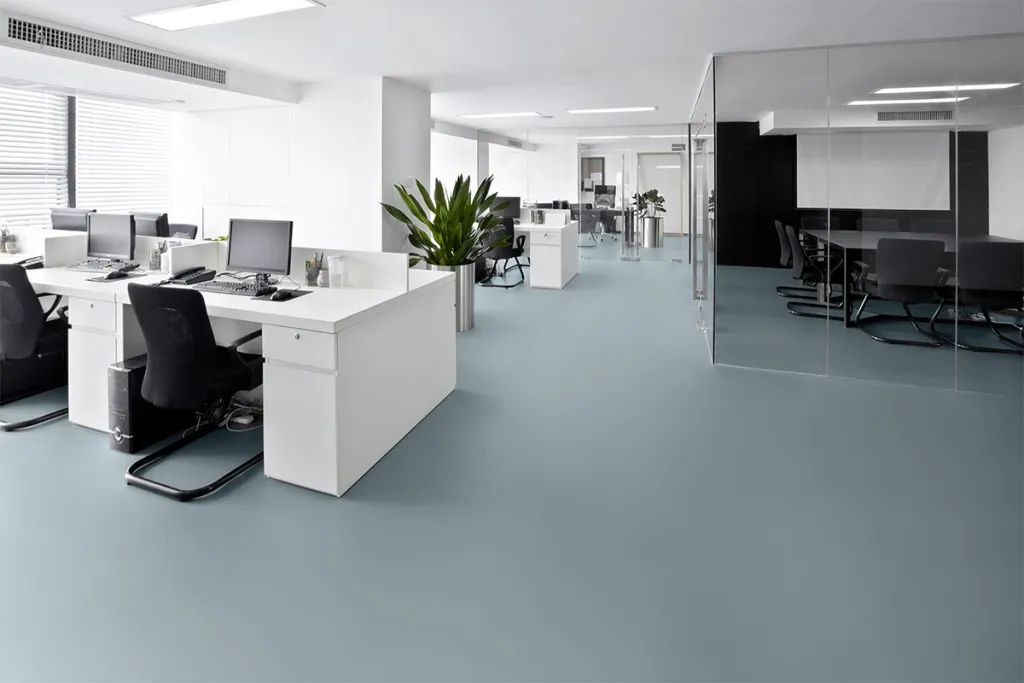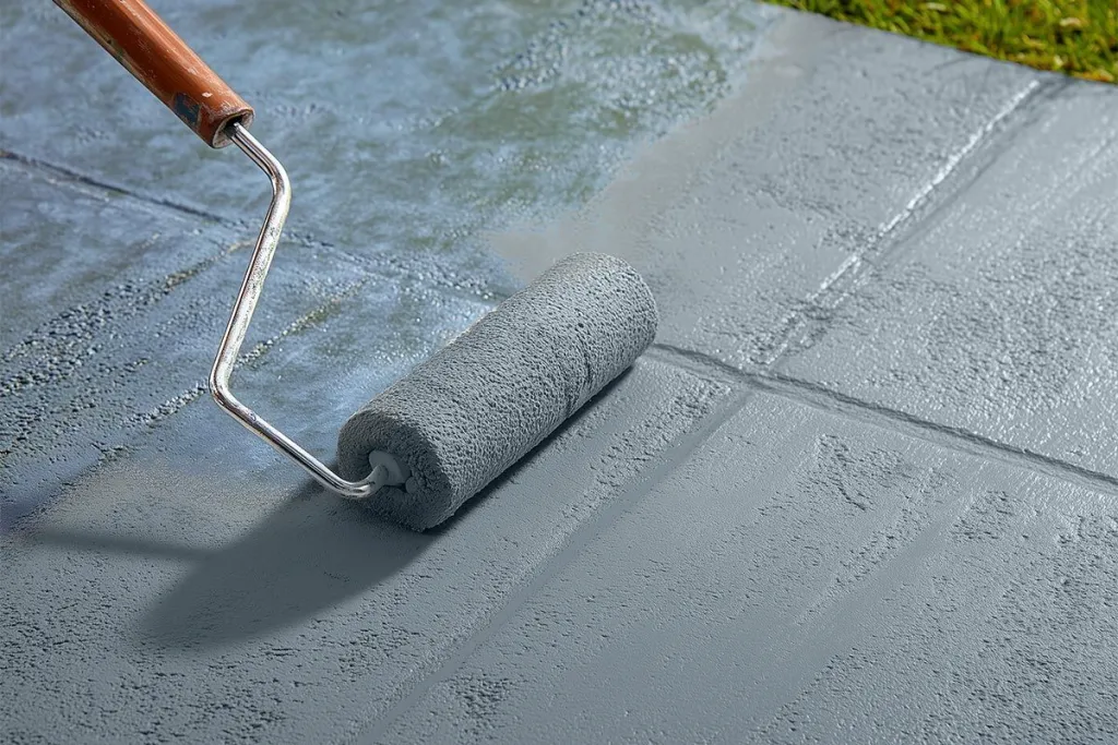 Do not wear rubber-soled shoes while sanding, cleaning, after cleaning, or during the application of the 2K PU Paint, as rubber microparticles may cause an uneven finish. Rubber-soled shoes can be worn once the second coat of 2K PU Paint is cured. Wait until the 2K PU Paint is walkable (approx. 6 hours) before applying the second coat.