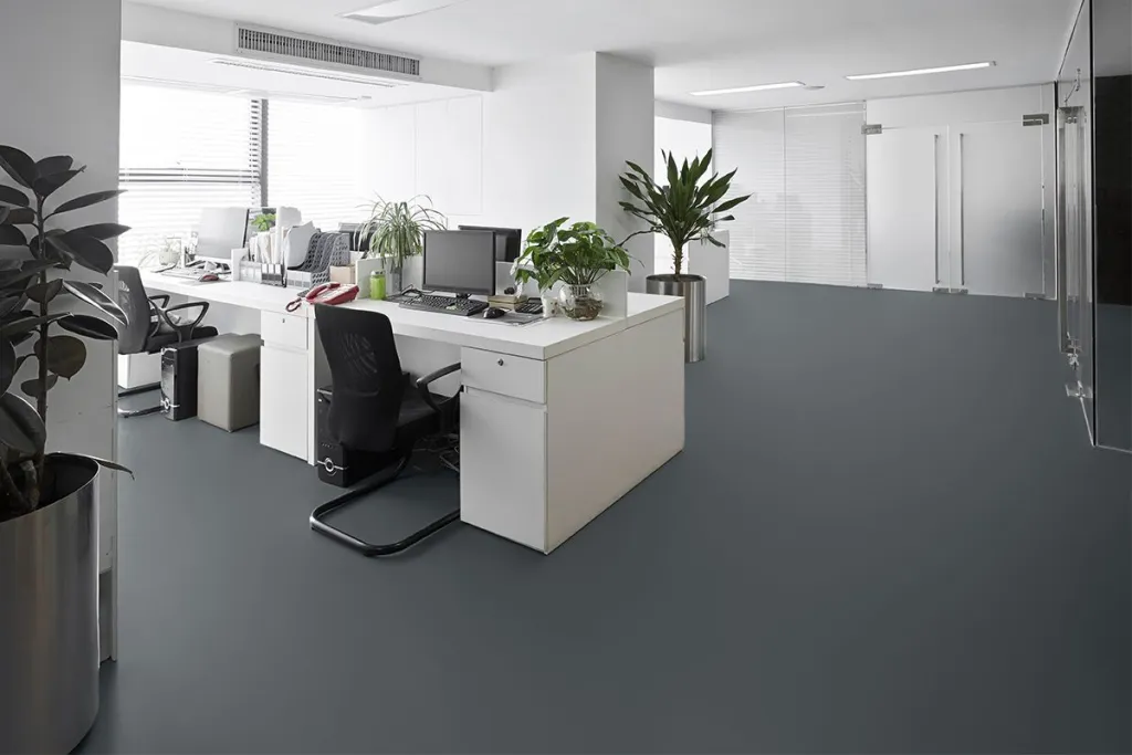 Do not wear rubber-soled shoes while sanding, cleaning, after cleaning, or during the application of the 2K PU Paint, as rubber microparticles may cause an uneven finish. Rubber-soled shoes can be worn once the second coat of 2K PU Paint is cured. Wait until the 2K PU Paint is walkable (approx. 6 hours) before applying the second coat.