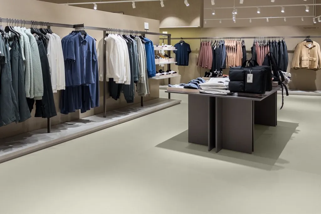 Do not wear rubber-soled shoes while sanding, cleaning, after cleaning, or during the application of the 2K PU Paint, as rubber microparticles may cause an uneven finish. Rubber-soled shoes can be worn once the second coat of 2K PU Paint is cured. Wait until the 2K PU Paint is walkable (approx. 6 hours) before applying the second coat.