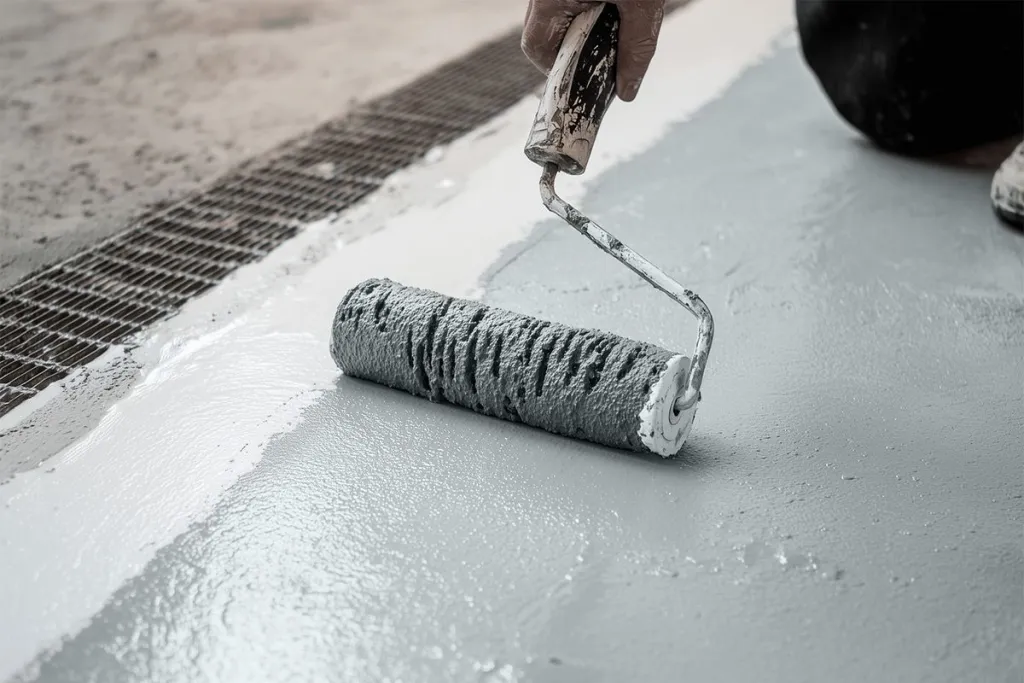 Do not wear rubber-soled shoes while sanding, cleaning, after cleaning, or during the application of the 2K PU Paint, as rubber microparticles may cause an uneven finish. Rubber-soled shoes can be worn once the second coat of 2K PU Paint is cured. Wait until the 2K PU Paint is walkable (approx. 6 hours) before applying the second coat.