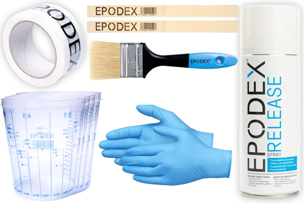 This set includes all accessories you need for your pouring and casting project. Ideal for river tables, lamps, cubes, and much more.