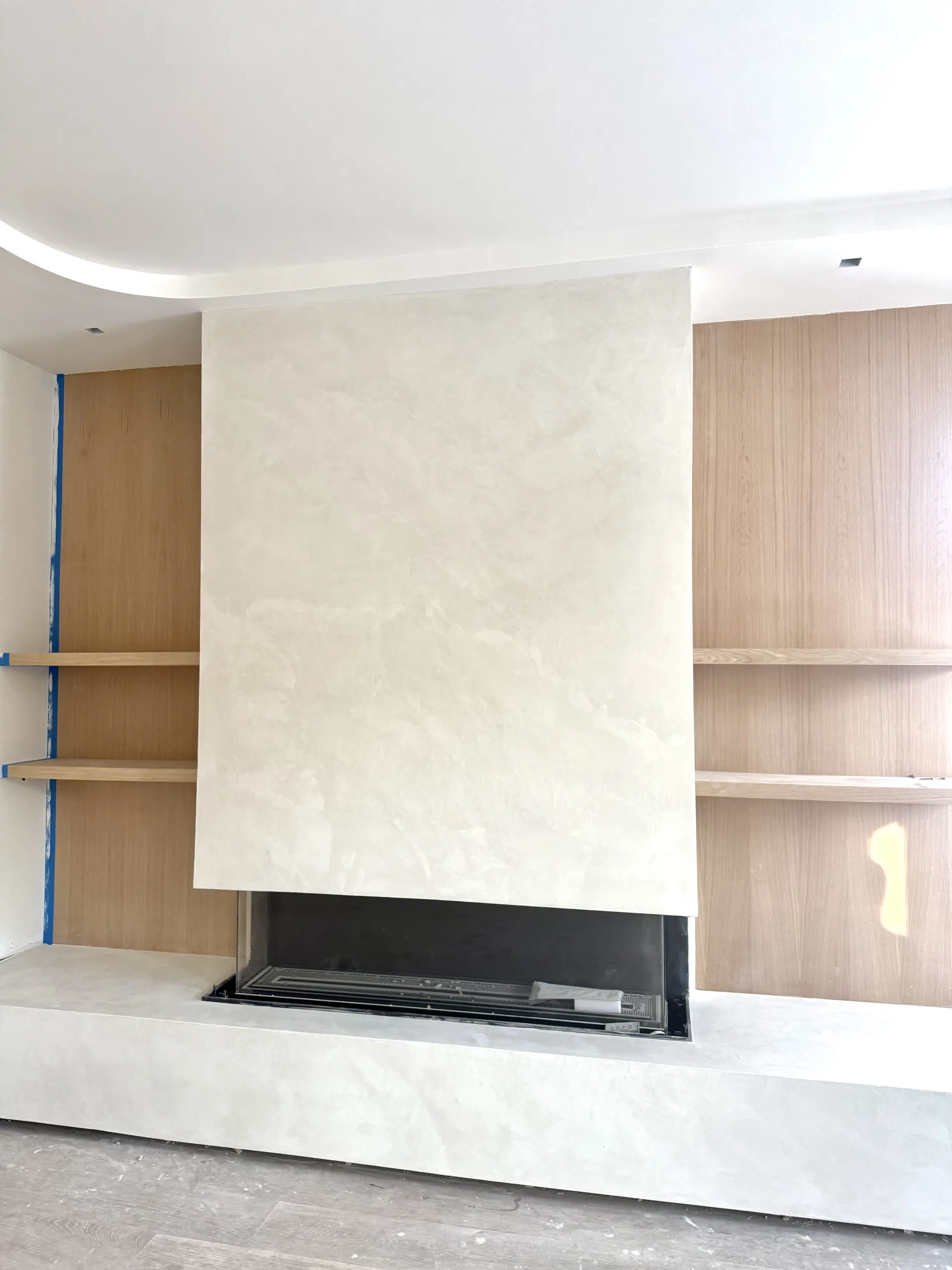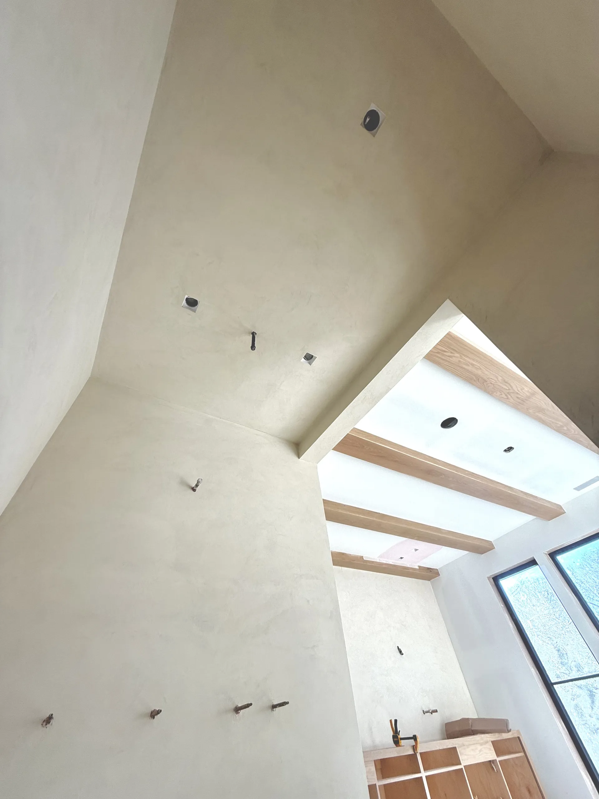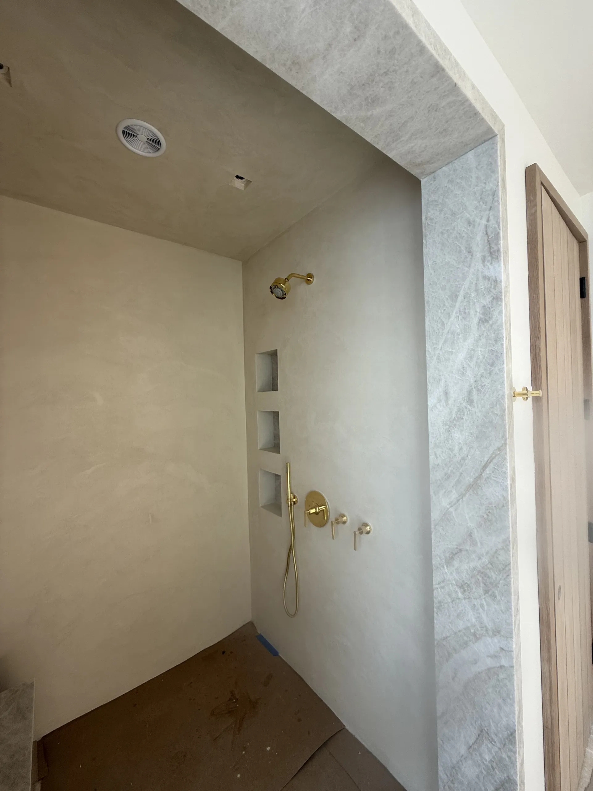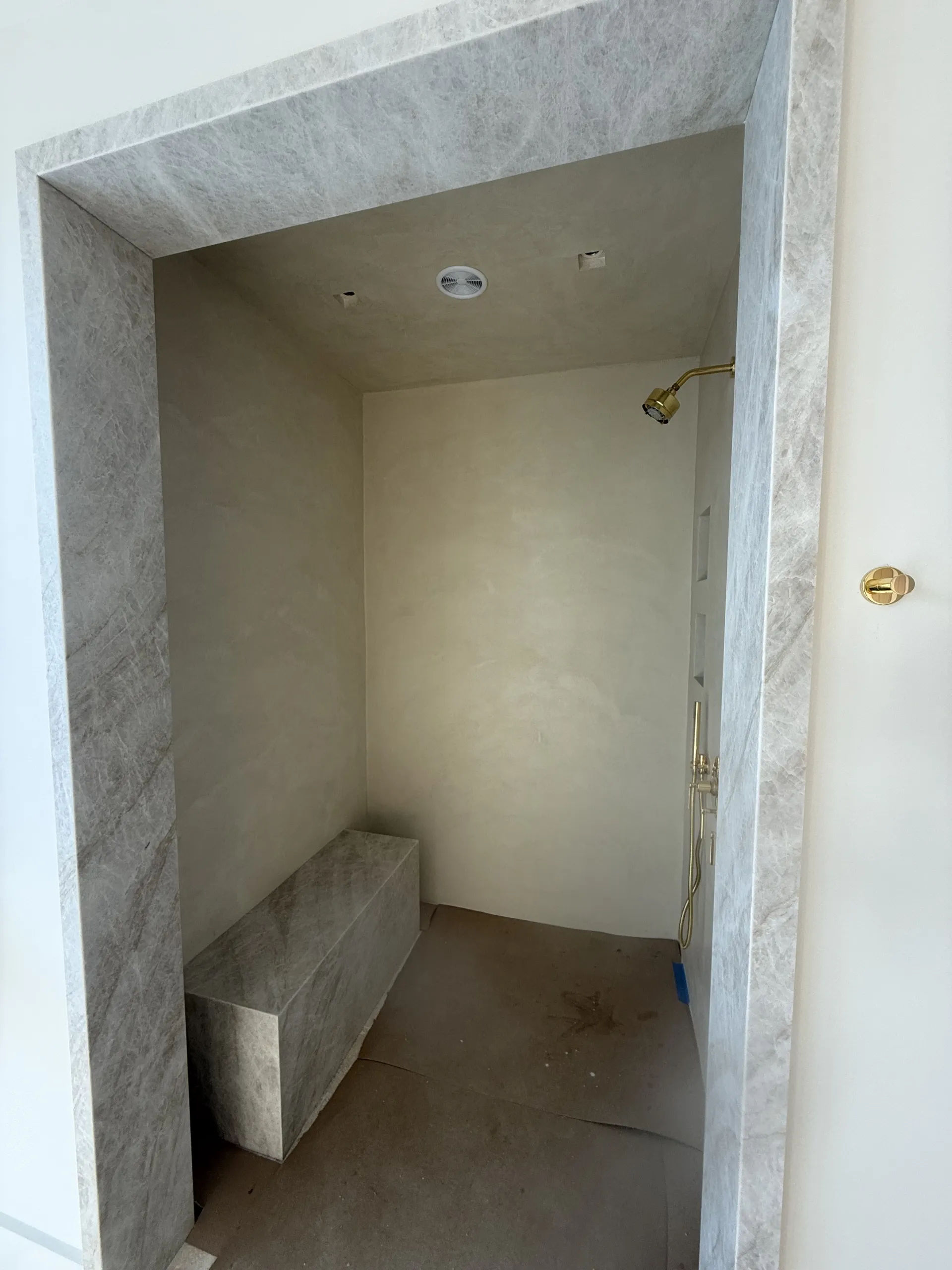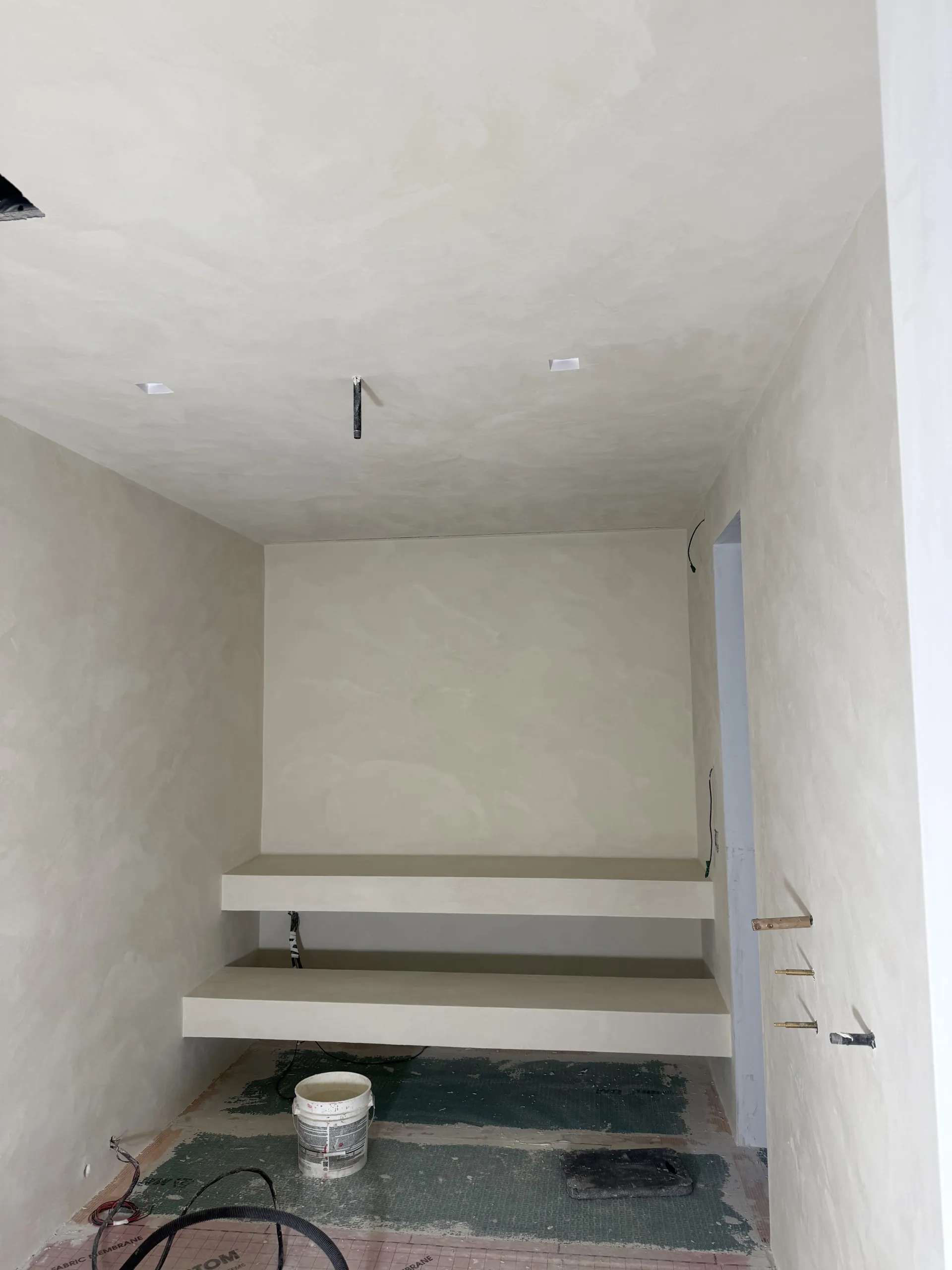 Application of microcement on walls: Layer 1 (medium grain size): 0.24lb/sqft, Layer 2 (medium grain size): 0.24lb/sqft