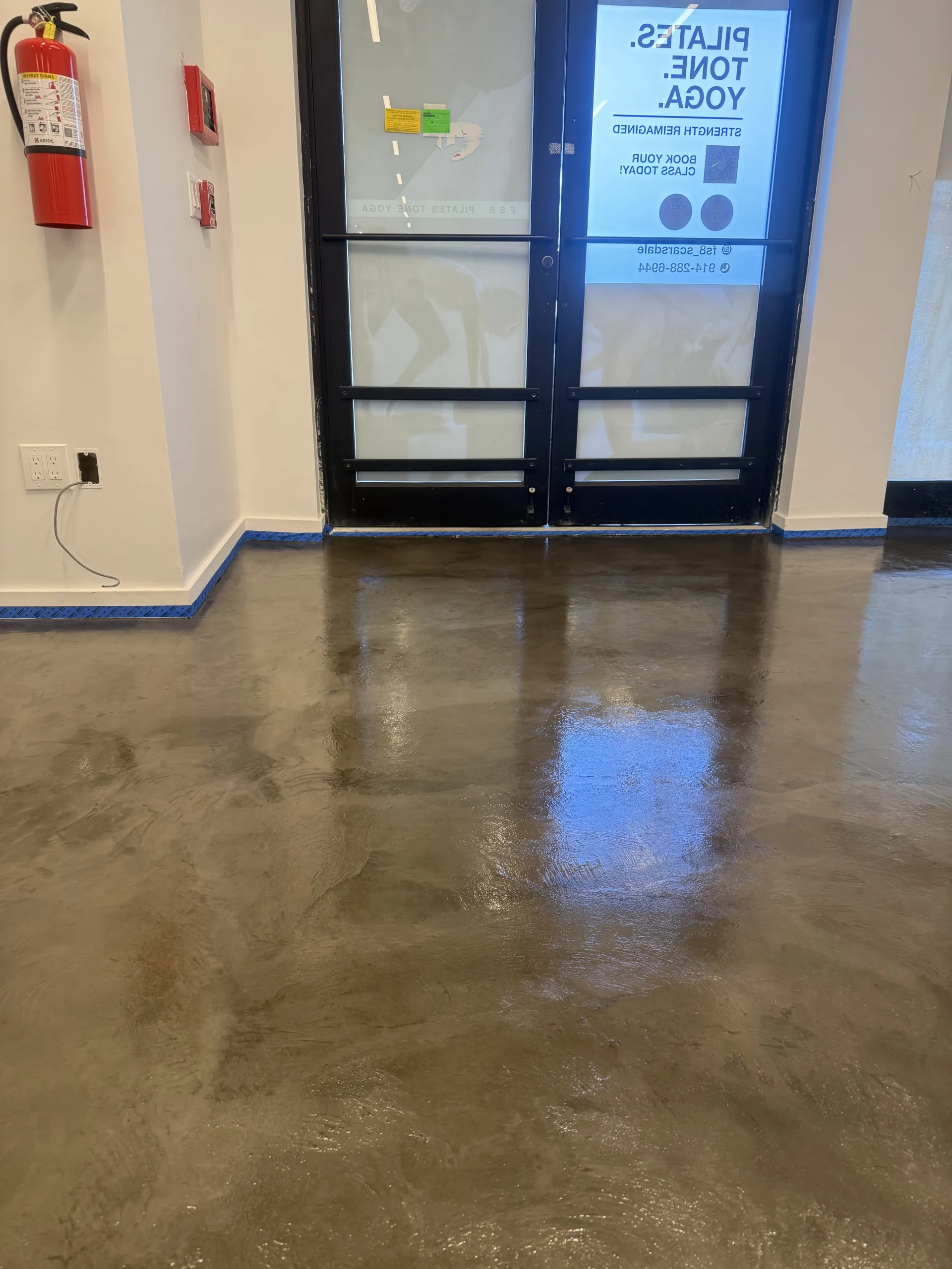 Application of microcement on a floor: Layer 1 (large grain size): 0.32lb/sqft, layer 2 (medium grain size): 0.24lb/sqft