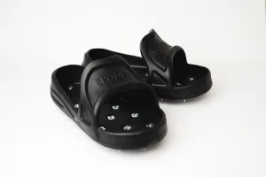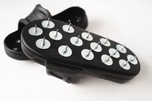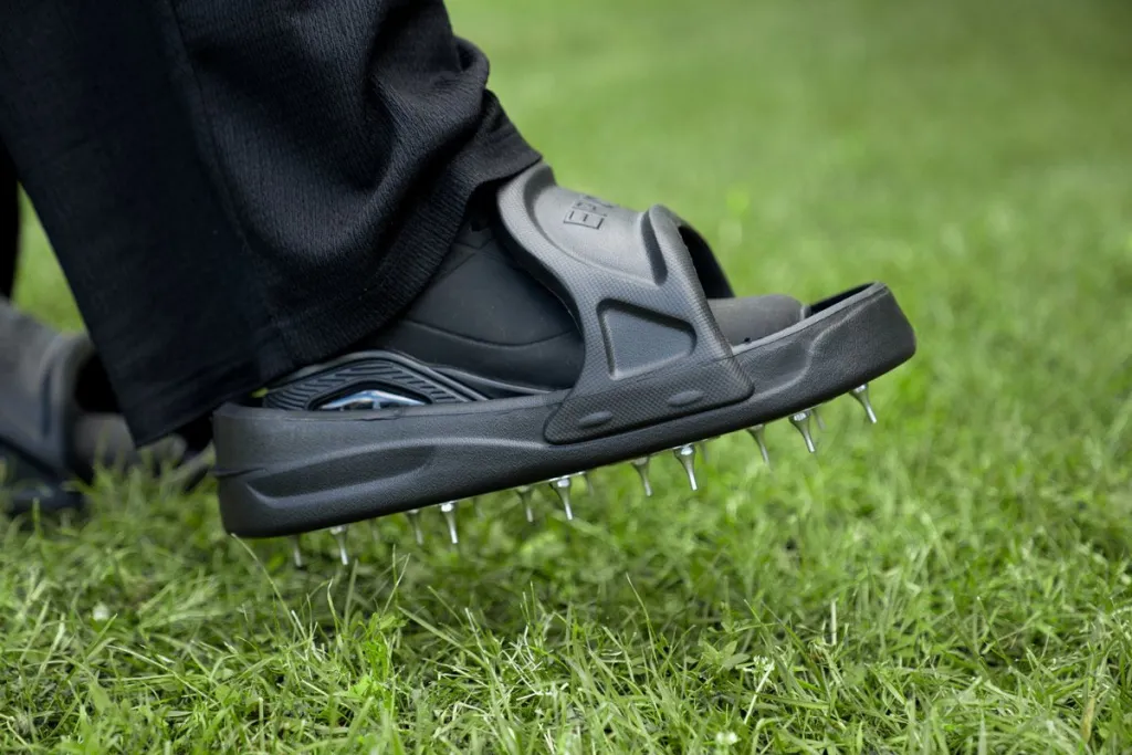 Each slip-on aerator shoe has 16 spikes with dull, flat tips and measures 1’2’’ long and 6 57/64’’ wide. Please note that we do not recommend using this product to walk on microcement.